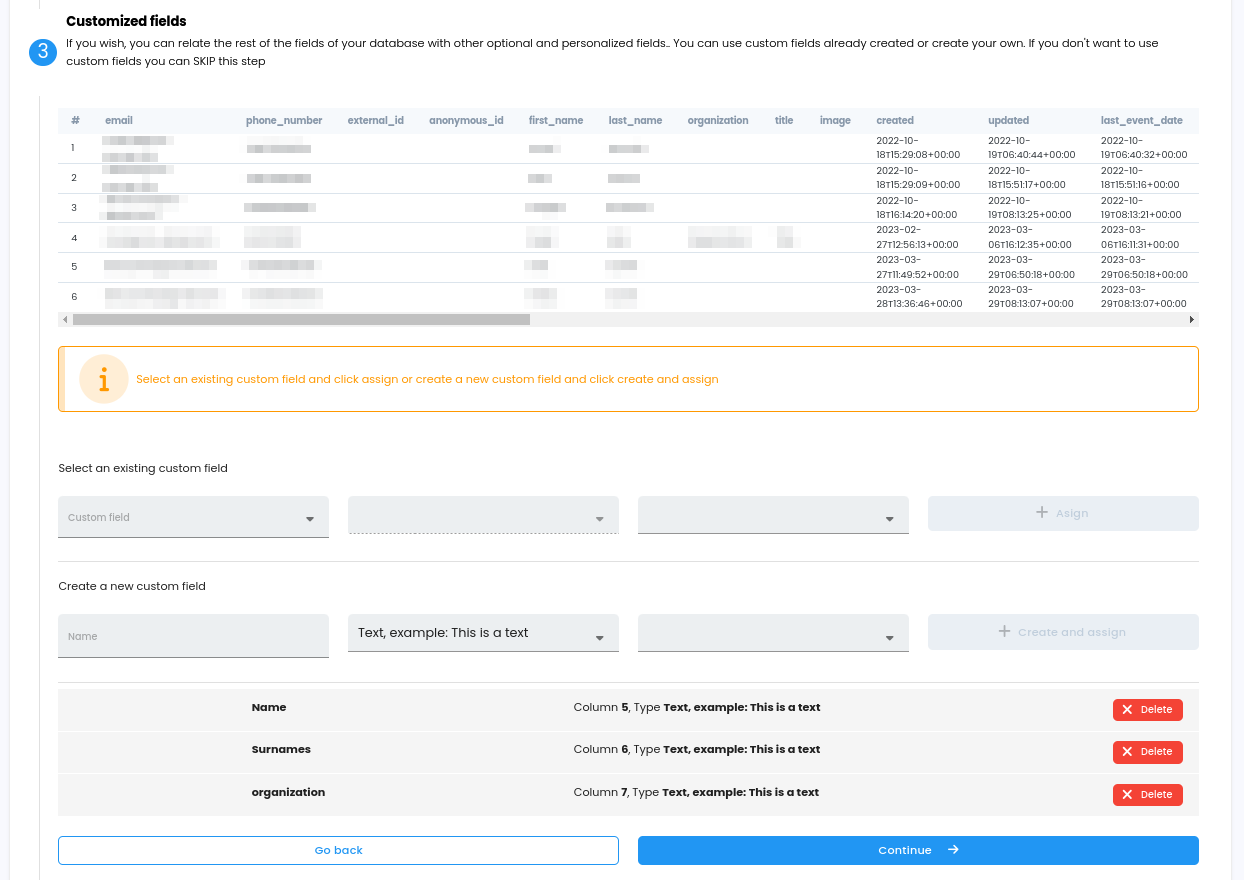 Seleccionamos o creamos todos los campos personalizados que queremos importar desde esta base de datos.