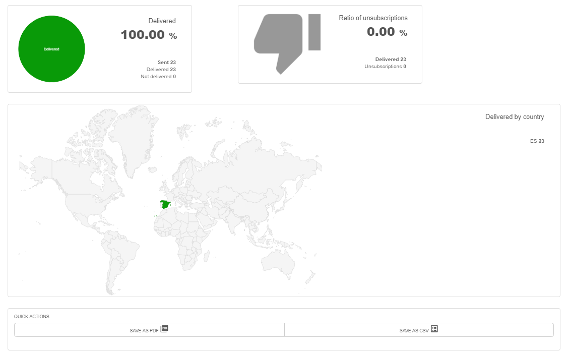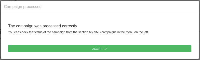 Al pulsar el botón se mostrará un mensaje confirmando que la campaña se ha procesado correctamente.