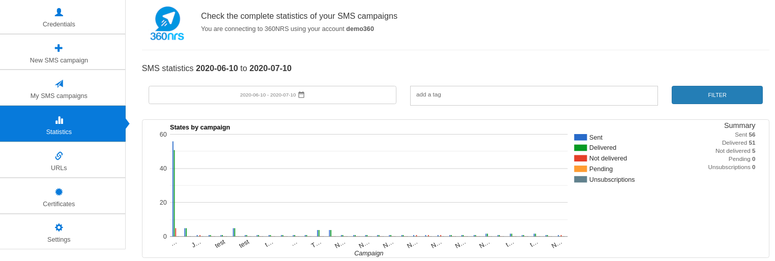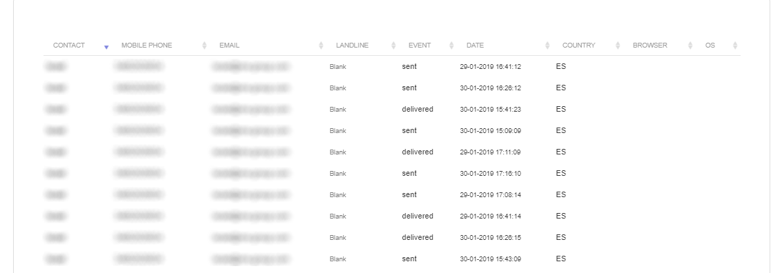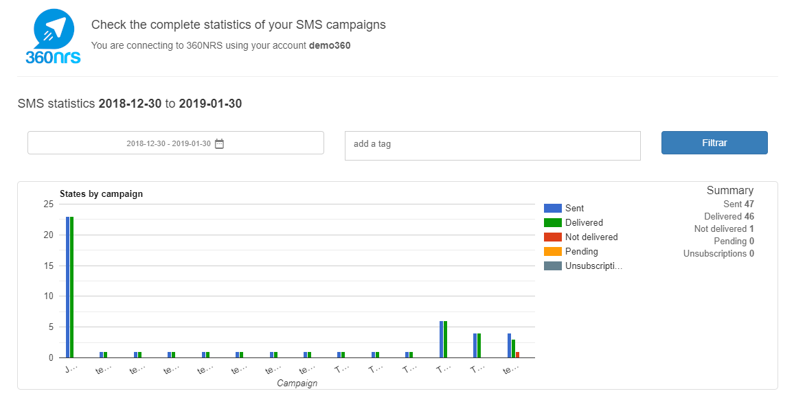 En esta sección podrás ver un listado de todas las campañas enviadas desde el asistente Nueva campaña de SMS.