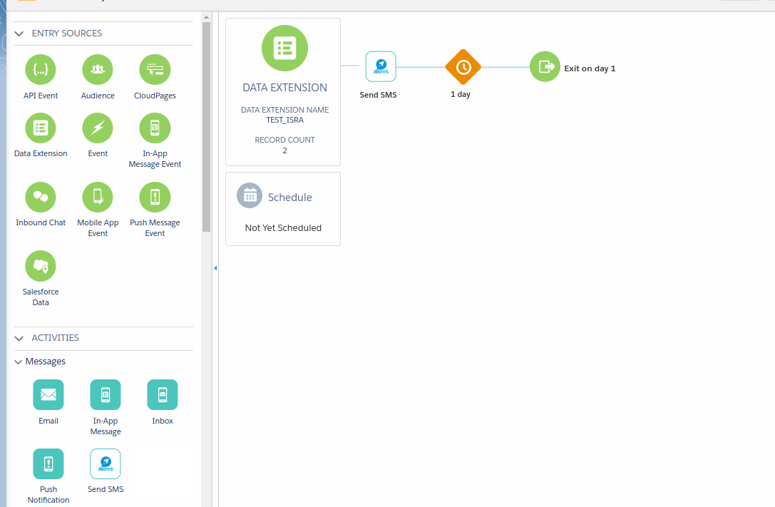 Cuando el Journey se ejecute y llegue a esa acción se enviará el SMS.