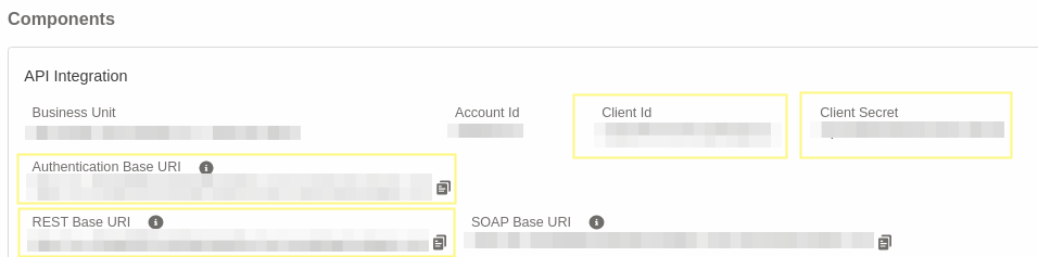 Pulsando en el paquete 360nrs, podrás ver el Client id, Client secret, Auth url y Rest url.