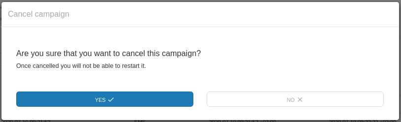 Dependiendo del estado, una campaña se podrá pausar, reanudar, cancelar y duplicar. Independientemente del estado se podrá ver una vista previa de la campaña.