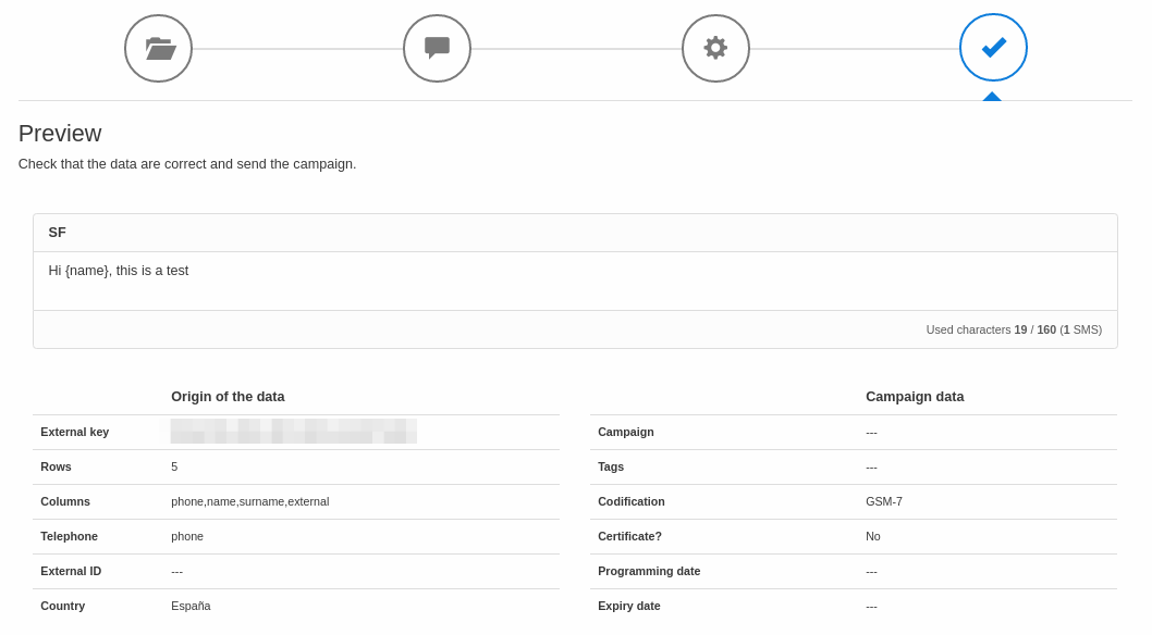 En esta sección podrás enviar o programar una campaña de SMS utilizando los datos de entrada de alguno de tus Data Extension.