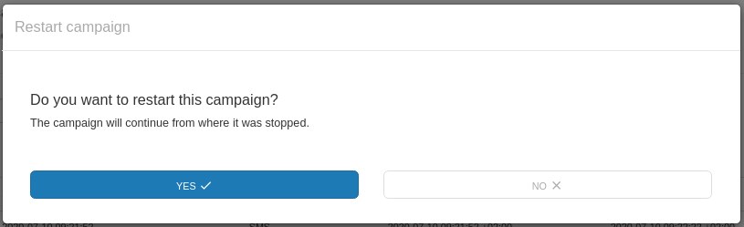 Cuando una campaña está en estado PAUSADO puede reanudarse. La campaña continuará desde donde se quedó cuando se pausó.