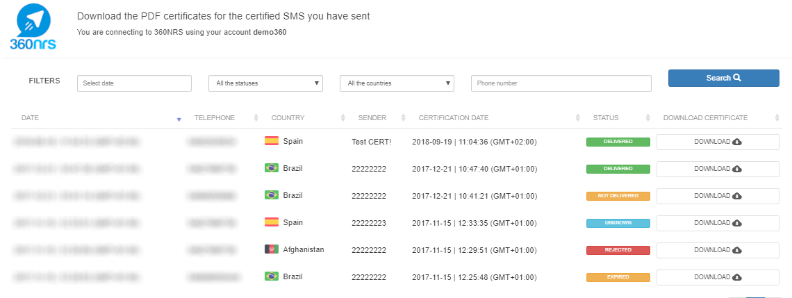 | Certificado | Indica si el SMS se quiere enviar como certificado o no.* Los mensajes certificados tienen coste adicional. |